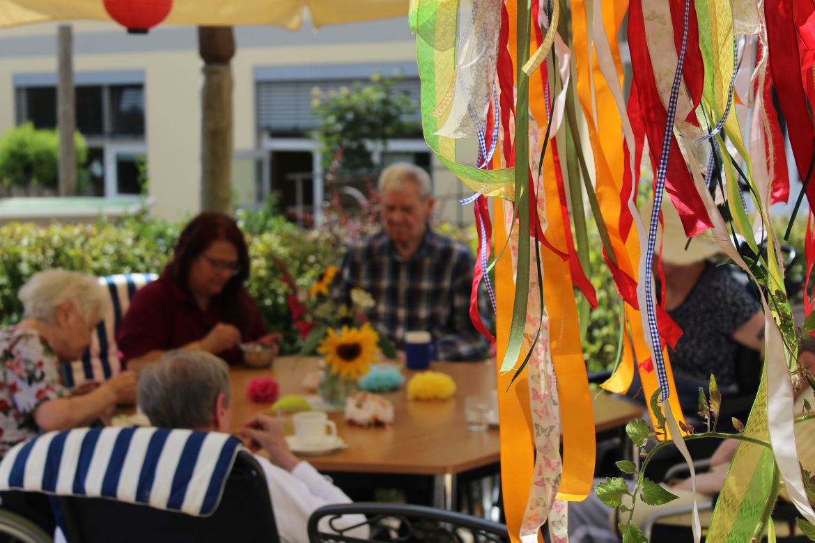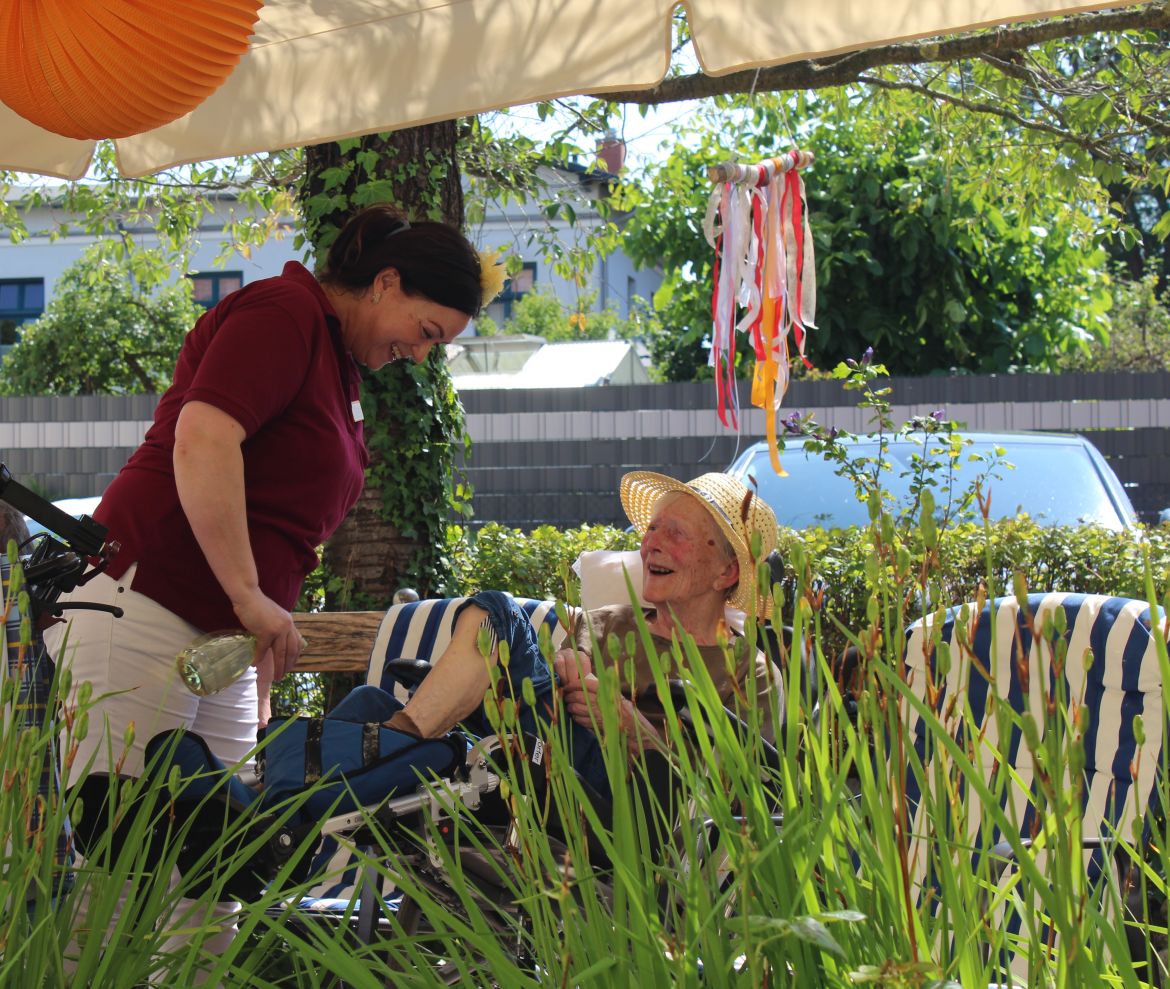 Bei bestem Wetter und Sonne satt feierten unsere Bewohner:innen und Mitarbeiter:innen des „Lindenhofs“ ausgelassen bis in die späten Nachtmittagsstunden. Und was darf bei einem richtigen Sommerfest nicht fehlen? Ein großer Eisbecher natürlich! Für unsere Bewohnenden die perfekte Einstimmung und eine willkommene Abkühlung! Die war auch bitter nötig an diesem heißem Sommertag, denn die Überraschung des Nachmittags ließ noch ein wenig auf sich warten. Langeweile aber kam nicht auf - mit kleinen Streichen zauberten die Mitarbeitenden den Bewohnenden immer wieder ein herzliches Lächeln ins Gesicht. Und als dann noch eine Bewohnerin zur Einstimmung auf den mit Spannung erwarteten Künstler „Hoch auf dem gelben Wagen“ so gefühlvoll und textsicher schmetterte, als hätte sie nie etwas anderes getan und als wäre genau hier, zwischen Strohhüten und Lavendel, einzig und allein ihre Bühne, war die Stimmung perfekt.